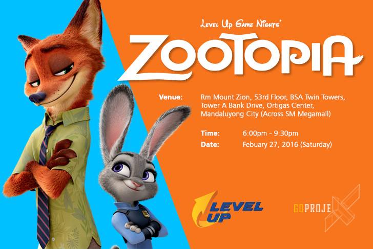 In the site’s bid to inform of any upcoming geek-related stuff happening, we’d like to share that the Level Up Game Nights group will have their monthly game night invite this coming Saturday, Feb. 27. 2016 at the BSA Towers. Titled, Level Up Game Nights Goes Zootopia, the event is a meetup for people who are interested to have a great time while meeting like-minded people over board games.
