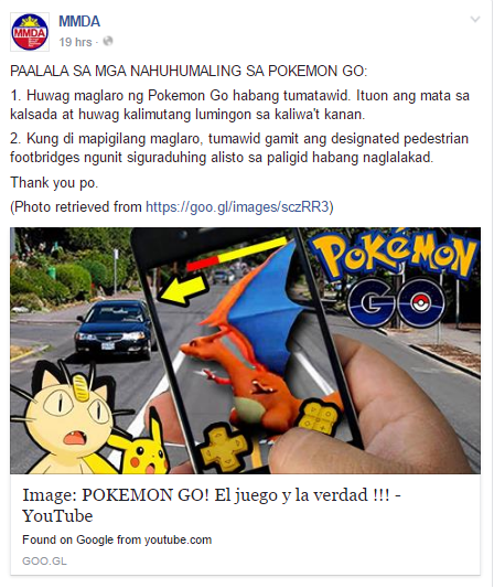 Whoever said that the Metropolitan Manila Development Authority isn’t keeping itself updated with the current trends in video game and pop culture may be in for a treat. As the latest PSA from MMDA puts in a timely reminder for Manila players of Pokemon Go.