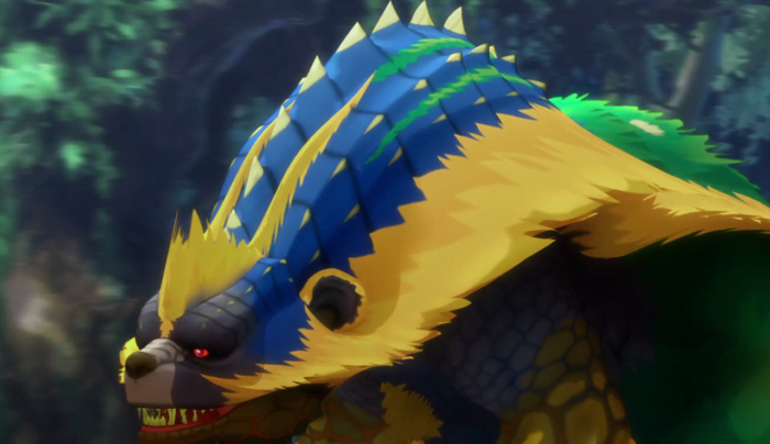 As the episode continues we are then introduced to more characters along the way and to more monsters like the Arzuros (or Aoashira in the Japanese version)