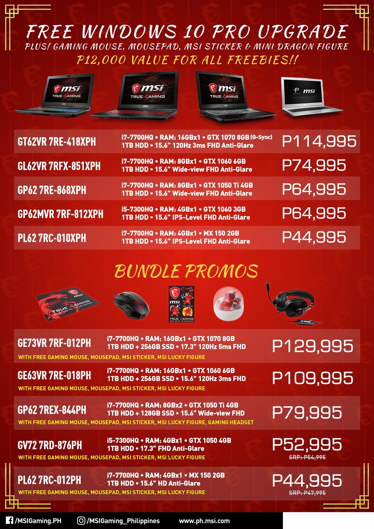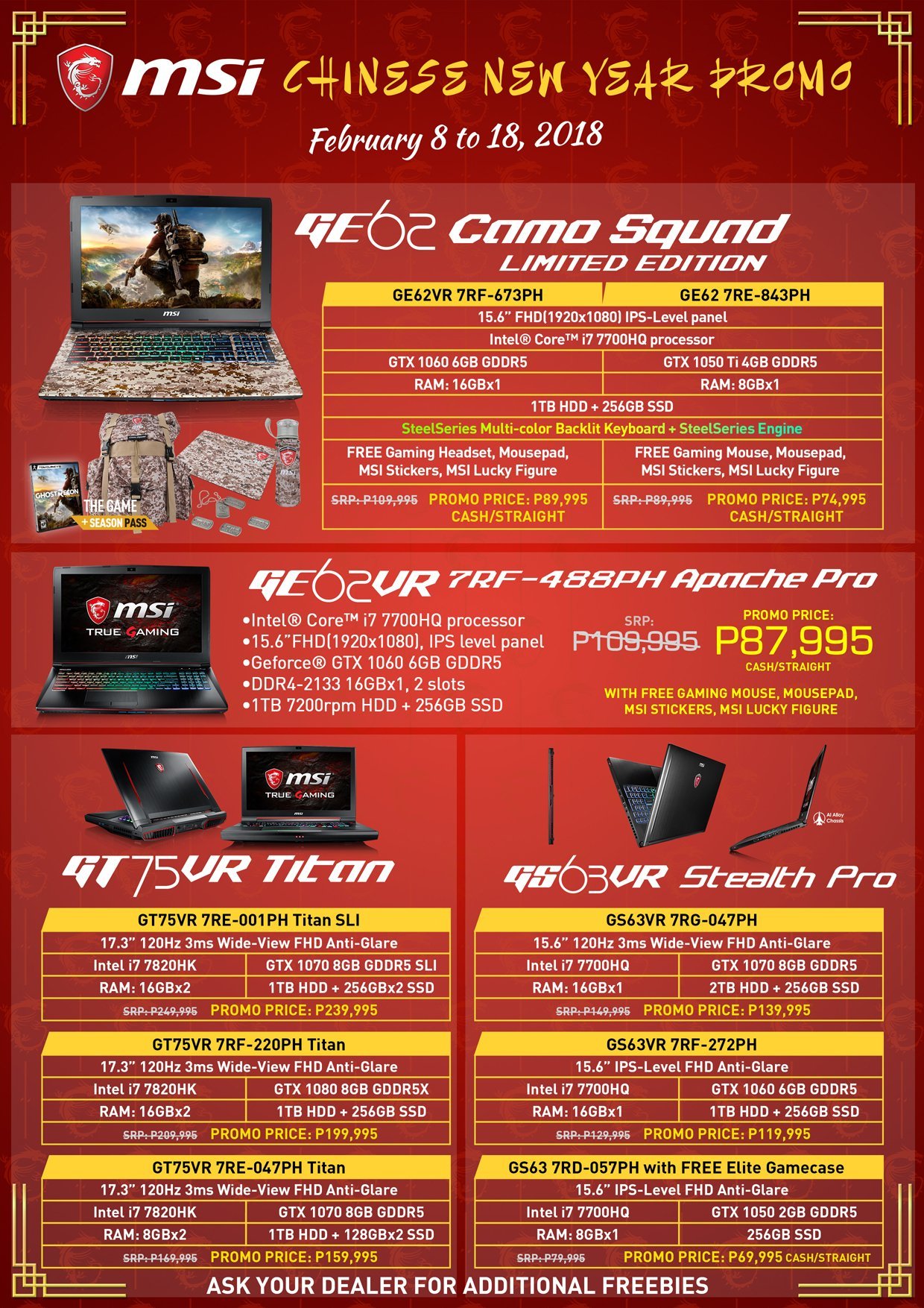 MSI is having it’s Chinese New Year 2018 laptop promotions by giving away discounts and freebies on select MSI Gaming notebooks this coming February 8 and will last until February 18.