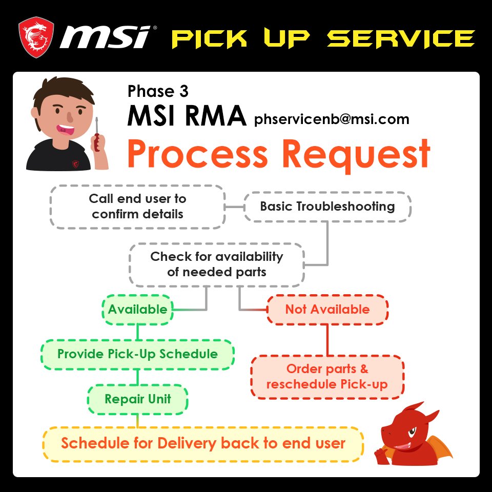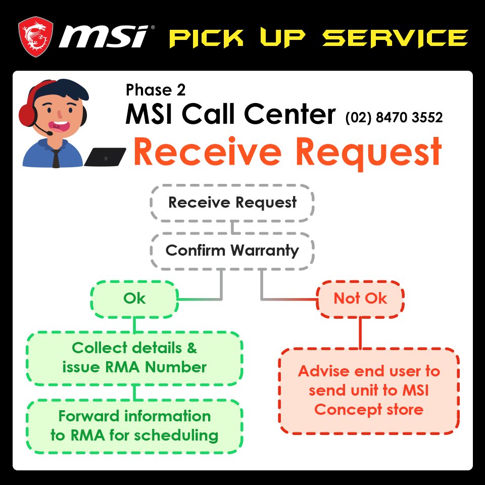 - MSI Service also has the right to change the pickup schedule, and the end-user will be advised of the change a day before.