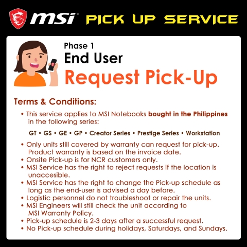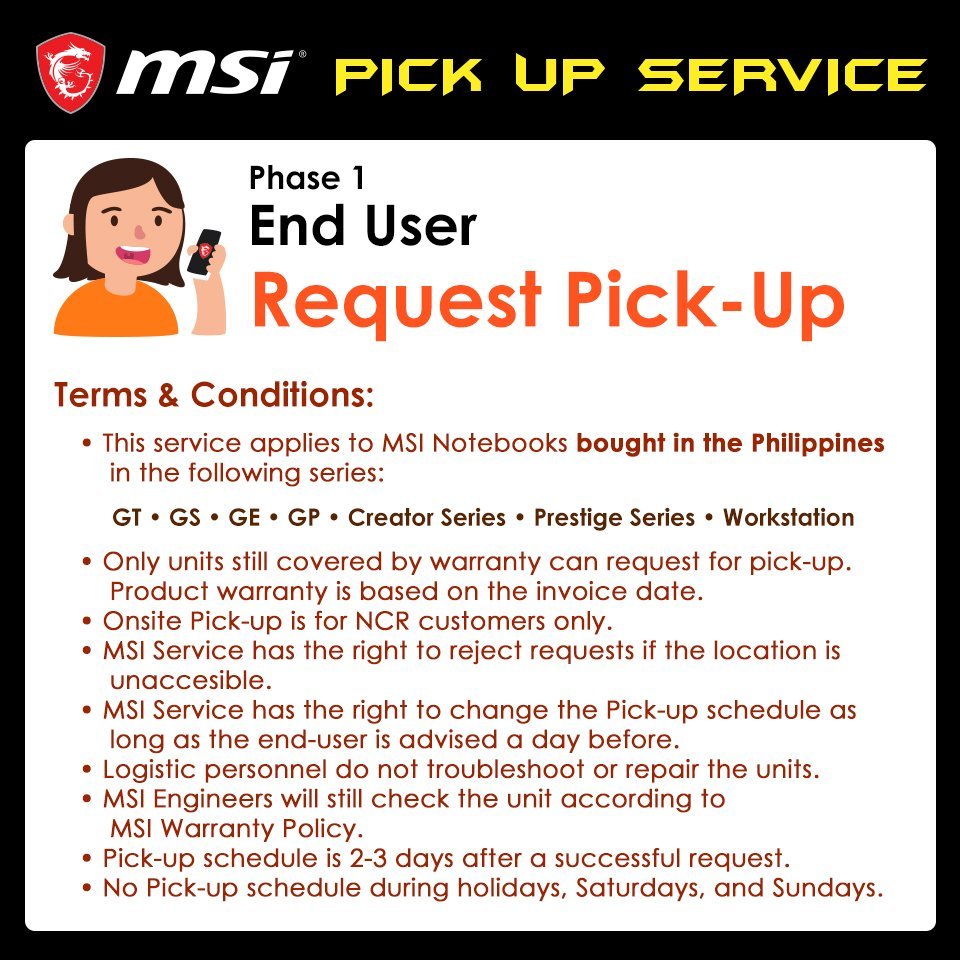 Meanwhile, here’s the MSI pickup service terms and conditions: