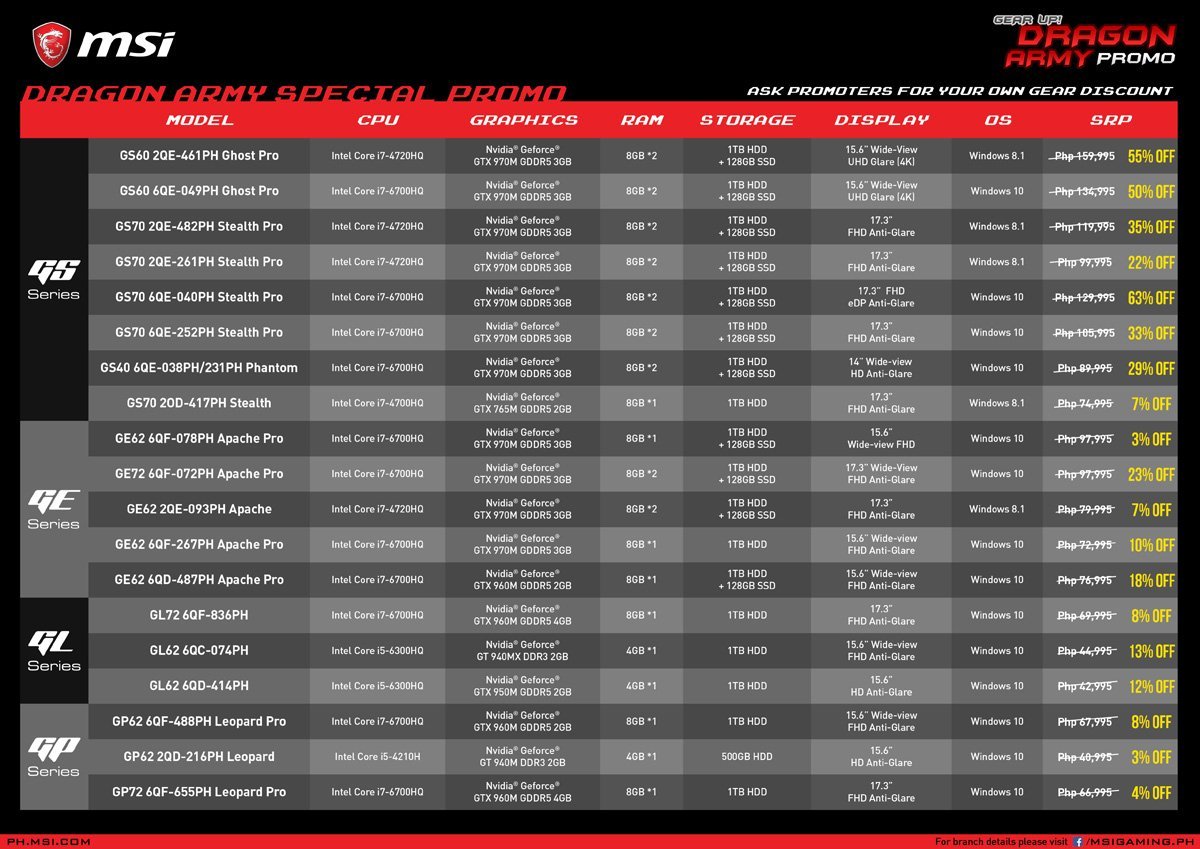 This season may be the best chance for you to get your own gaming laptop as MSI is having their Dragon Army promo, which not only provides discounts for as high as 55% off from their GS, GE, GL and GP series of laptops.