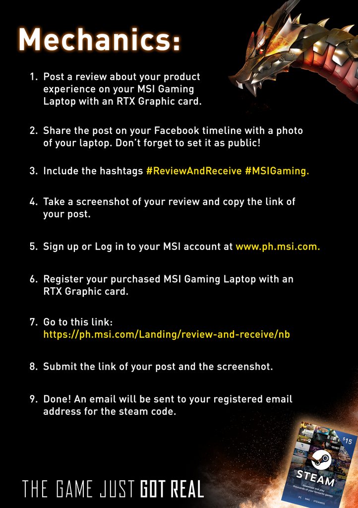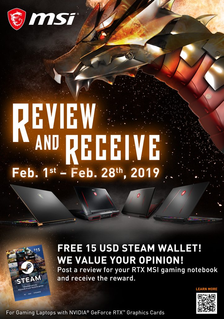 MSI is offering people who have reviewed their devices 15 usd with their Review and Receive Promo.