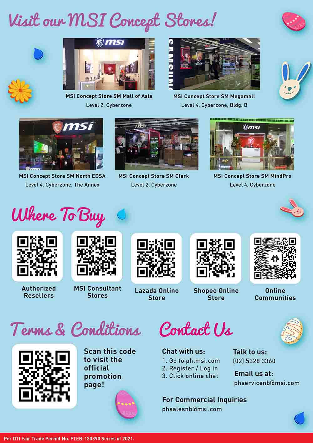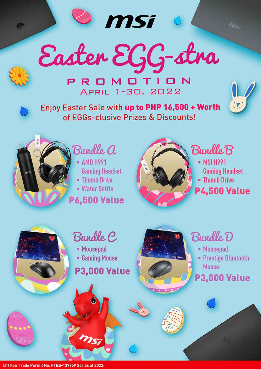 You can get these egg-sclusive offers through MSI Concept Stores, authorized resellers, and official online stores. Don’t miss the chance to hop in on MSI’s Easter Egg-stra Promotion this April 1-30, 2022.