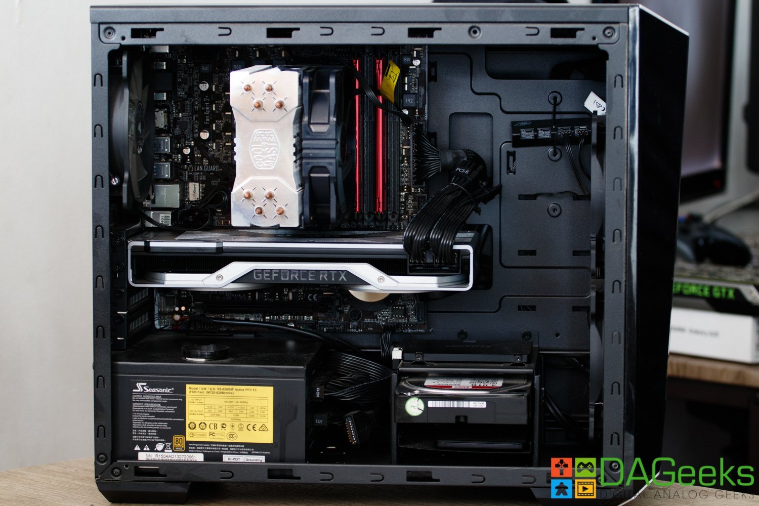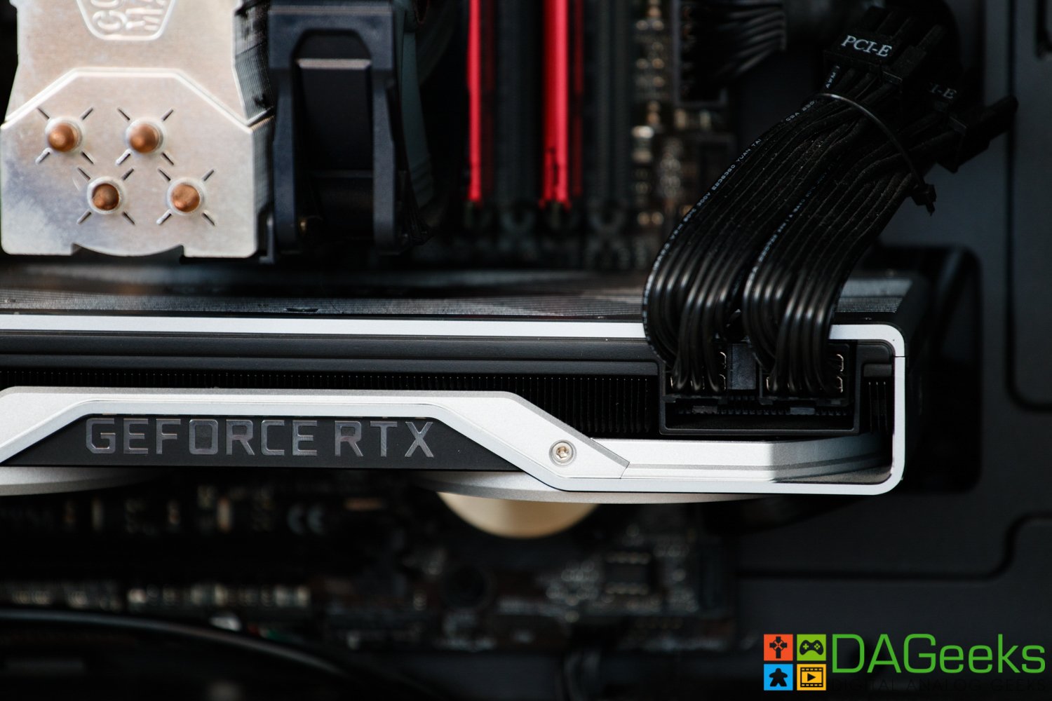 It looks like a tabletop stove. Kidding aside, the dual-fan configuration of the Founder’s Edition really helped keep the card cool versus the single-fan blower style of previous FE cards. Looking behind the card, you’ll find 1 HDMI 2.0b slot, 3 DisplayPort slots and a VirtualLink connector for VR systems. Sadly, missing a dual-link DVI port, but if you have a recently-bought monitor, this shouldn’t be a problem. A quick note to check your monitor’s display capabilities for compatibility, especially if you want to maximize your experience in your high refresh rate monitor. Up top, you have the GEFORCE RTX writing with green LEDs, and then the 8-PIN and 6-PIN power connectors. Another tip before getting this card, make sure your PSU has enough wattage and correct cables to power the RTX 2080.