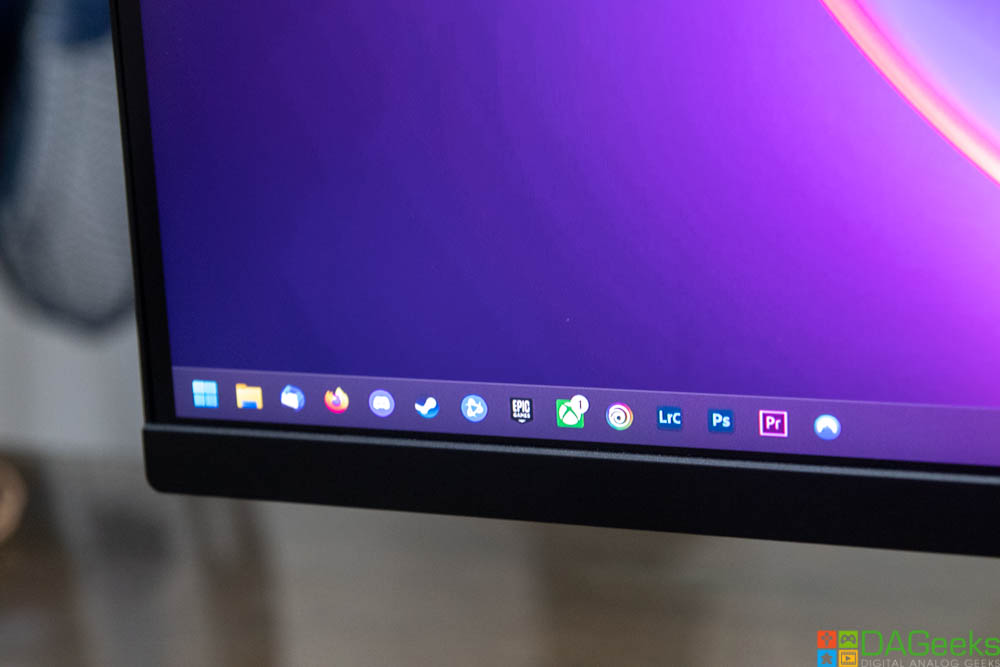 It has thin bezels and even a thin chin, perfect for multi-monitor setups. The all-black aesthetic makes it suitable for professional settings or just any type of setup.