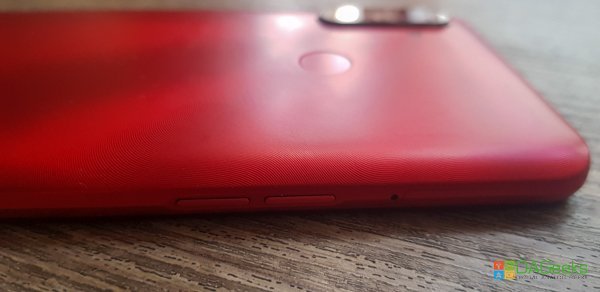 The first thing you’ll notice is the eye-catching vibrant red color with what realme calls a sunrise design. The ridges on the back gives the back a sun ray effect bursting from the camera. This color is called Blazing Red and the C3 is also available in Frozen Blue. I love the textured surface as it provides very good grip and is fingerprint resistant, very ideal for long gaming sessions. You also have the fingerprint sensor at the back. It has a ridge so you can easily feel where it is. You also have the triple camera setup and an LED flash beside the fingerprint scanner.