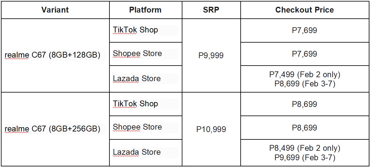 - Up to ₱2,300 off via realme TikTok Shop, Shopee Store, and Lazada Store (limited time only)