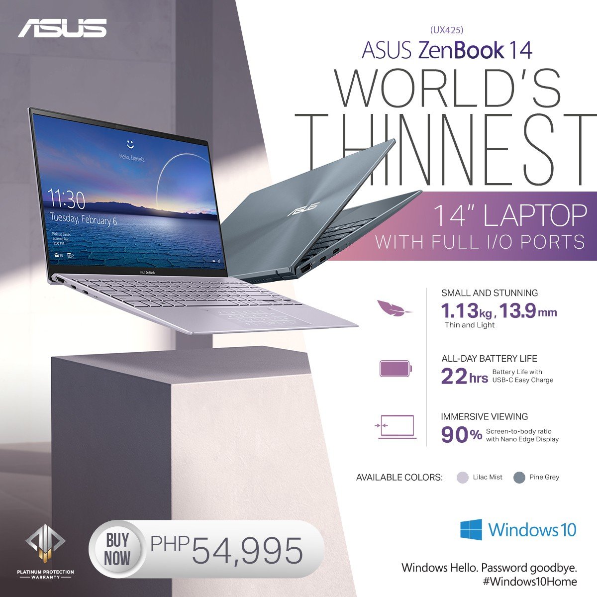 For the complete product details about the new ASUS ZenBook 14 (UX425), you may check out their product pages on the ASUS PH website.