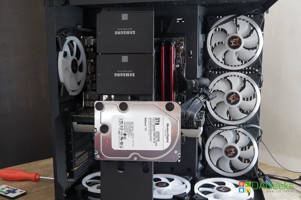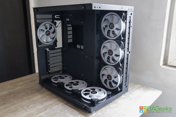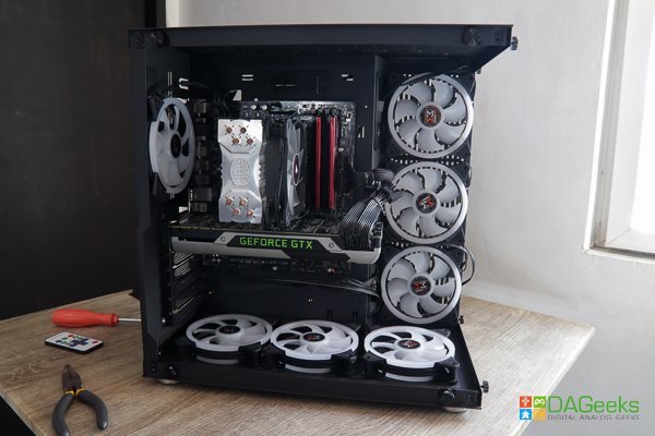 Voila, here’s the finished product. As you can see, the unruly cables are tucked neatly behind the second partition along with your drives. The Xigmatek Aquarius Plus showcases your components beautifully with its seamless front and side tempered glass panels and makes for one heck of a centerpiece in your room.