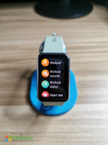 The Watch Fit comes with straps, in graphite black, mint green, and cantaloupe orange (online exclusive). It’s a full-screen display with 1.64″ AMOLED that supports slide and touch gestures. The screen’s resolution is set to 456 x 280 HD and has a side button that you will be using a lot. The case is using a durable polymer fiber. So visually, this means that even if the Watch Fit feels like it can easily break with its small build, it’s basically compact and well built.