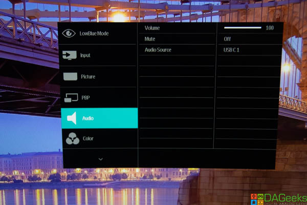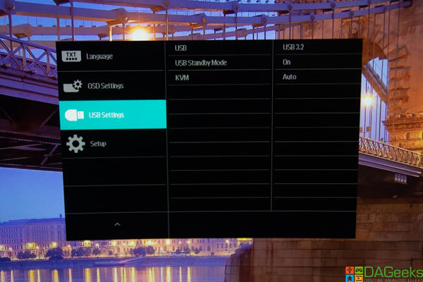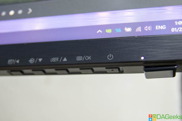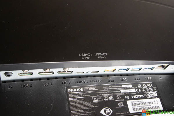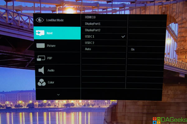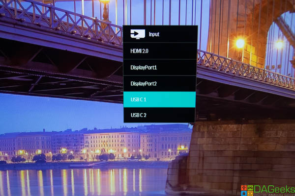 For the input ports, you have 2x DisplayPort 1.4, an HDMI 2.0b and 2x USB-C 3.2 Gen 1 with upstream and power delivery. The USB-C ports were very useful in our scenario at home with both me and my wife working remotely with laptops. Our laptops are connected via USB-C. It’s just a one-time setup and we could easily switch workstations in a snap. It works without any additional software installation on the machine side.