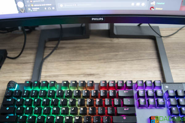 Though you might consider the length of your table as the feet will take up a bit of space. You can see from the picture that my keyboard is on top of the feet as my table’s length is around 48cm. I suggest having 60cm as minimum for the table length. You also have the option to mount it with a VESA compatible mount (100mm x 100mm). Make sure that your table is thick enough to hold the weight as this thing weights around 10kg without the stand.