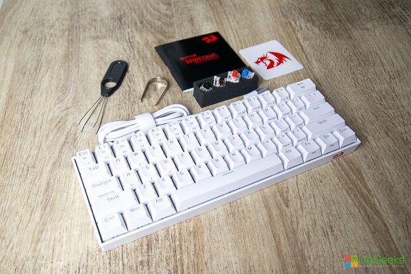 First, let’s see what you get with the package. Obviously, you have the Redragon Draconic K530 keyboard. The unit we got is the white one, there’s also an option for a black one.