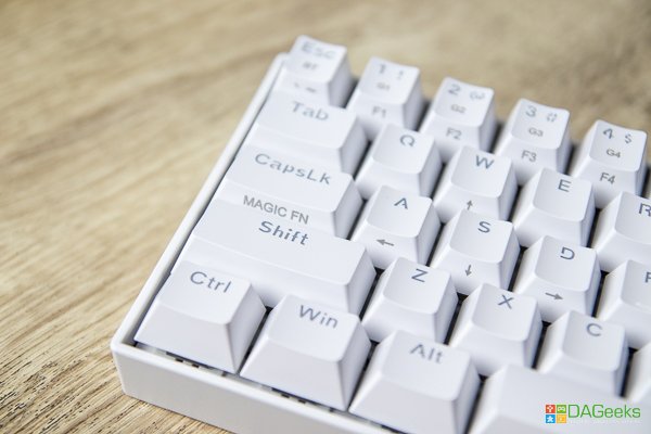 I have been using a 60% keyboard for the last 5 years, so using the Draconic K530 was not new to me. However, if you’re coming from a full-sized keyboard, one thing you’ll need to adjust to is the lack of arrow keys and F keys, if you’re into RPGs. The way 60% keyboard works is through layers. So the first layer is the normal one like the QWERTY and all the legends on top of your keycap. Holding down the CAPS LOCK (MAGIC Fn) button and pressing another will trigger the second layer, which is the legends printed on the bottom of the keycaps.